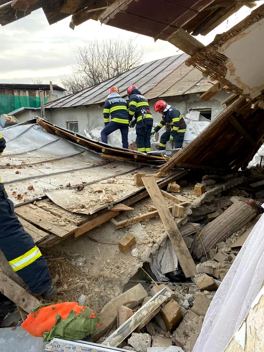 GALERIE FOTO: FOTO EXPLOZIE într-o locuință din Prahova. O persoană a rămas blocată sub dărâmături