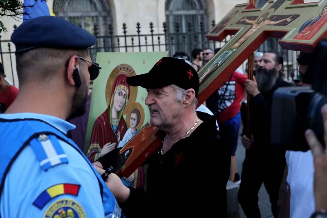 FOTO. Gigi Becali a ieșit cu preoții pe Calea Victoriei, să sfințească traseul după parada LGBT: „Noi facem marș de iertare a lor”