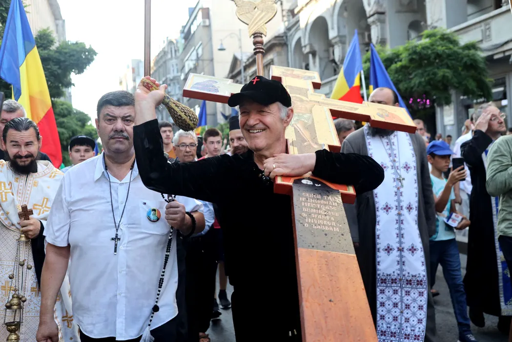 FOTO. Gigi Becali a ieșit cu preoții pe Calea Victoriei, să sfințească traseul după parada LGBT: „Noi facem marș de iertare a lor”