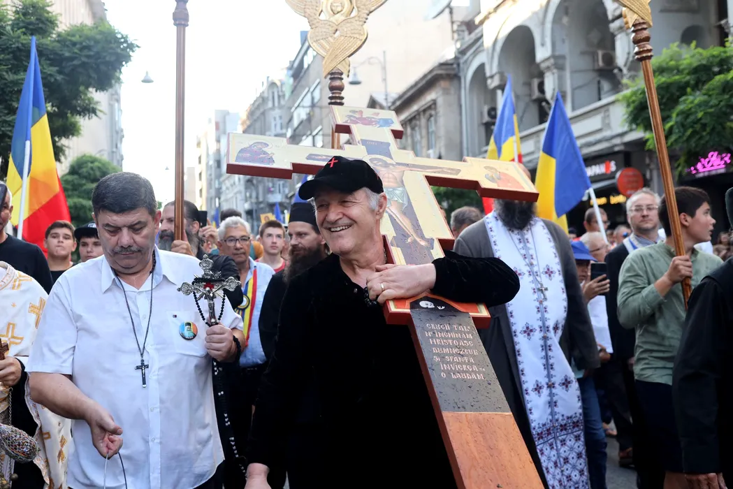 FOTO. Gigi Becali a ieșit cu preoții pe Calea Victoriei, să sfințească traseul după parada LGBT: „Noi facem marș de iertare a lor”