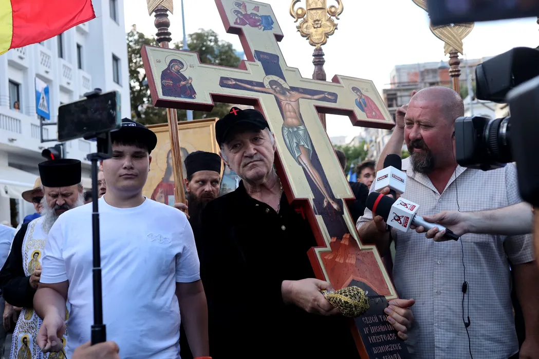 FOTO. Gigi Becali a ieșit cu preoții pe Calea Victoriei, să sfințească traseul după parada LGBT: „Noi facem marș de iertare a lor”