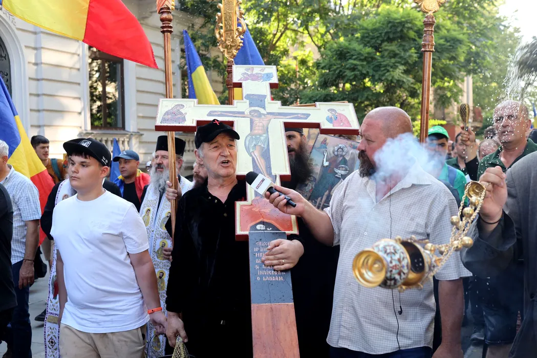 FOTO. Gigi Becali a ieșit cu preoții pe Calea Victoriei, să sfințească traseul după parada LGBT: „Noi facem marș de iertare a lor”