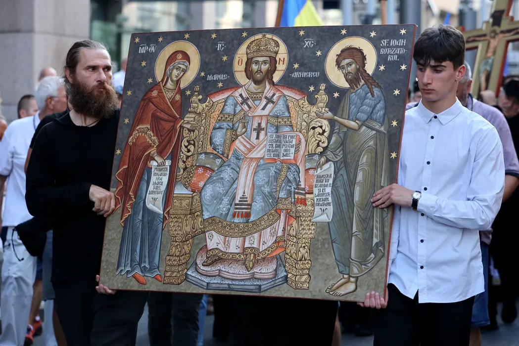 FOTO. Gigi Becali a ieșit cu preoții pe Calea Victoriei, să sfințească traseul după parada LGBT: „Noi facem marș de iertare a lor”