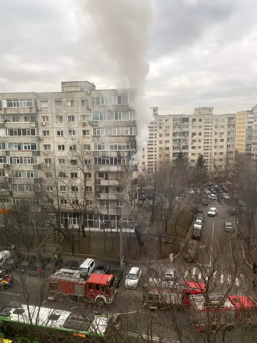 FOTO | Incediu puternic la un bloc din București. Mai multe echipaje, mobilizate la fața locului