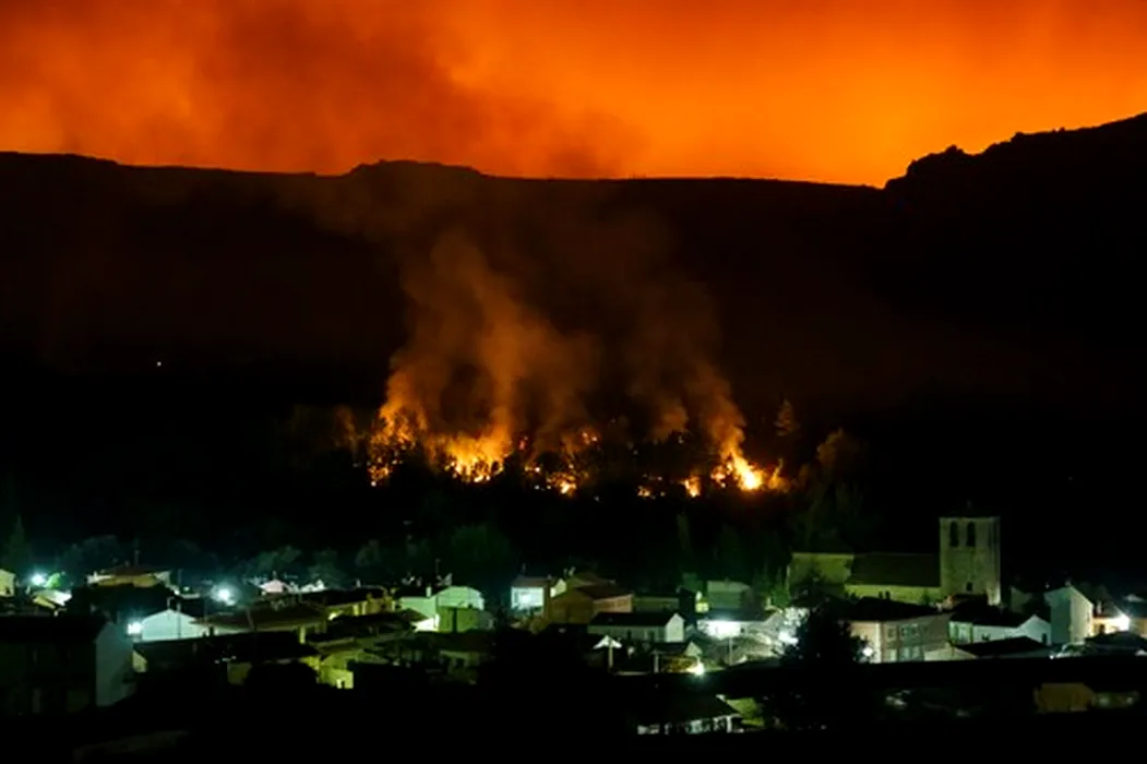 A wildfire advances towards Sotalbo near Avila, central Spain, on August 16, 2021. A thousand people were evacuated and more than 5,000 hectares burned from 11am, with flames spreading up over a 40-kilometer perimeter. Spain saw its highest temperature on record on Saturday as a heatwave on the Iberian peninsula drove the mercury to 47.4 degrees Celsius (117.3 Fahrenheit), according to provisional data from the state meteorological agency.,Image: 627201700, License: Rights-managed, Restrictions: , Model Release: no, Credit line: Profimedia