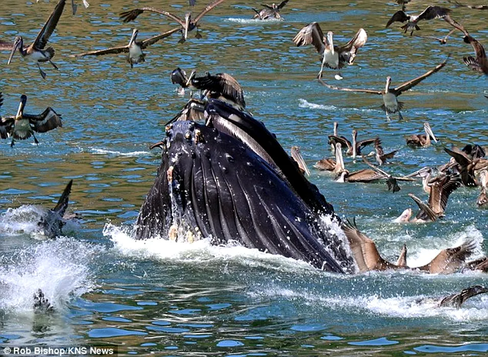 FOTO. Lupta unui pelican pentru a ieși din gura unei balene
