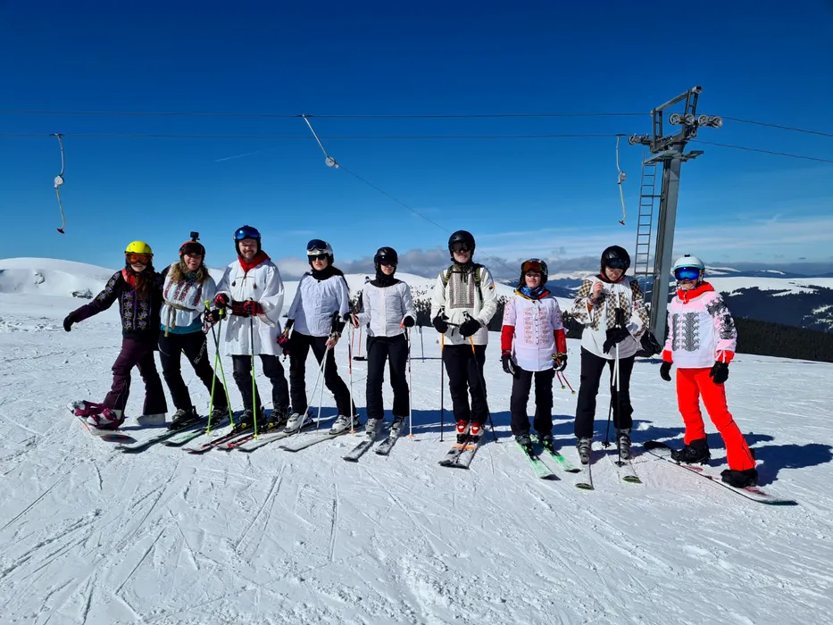 FOTO. Moment INEDIT pe pârtia de la Voineasa. Schiorii au venit în costume românești tradiționale și s-au „prins” în horă