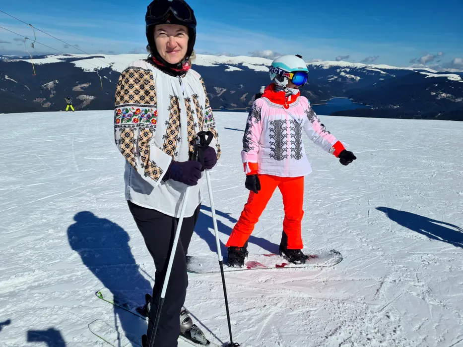 FOTO. Moment INEDIT pe pârtia de la Voineasa. Schiorii au venit în costume românești tradiționale și s-au „prins” în horă