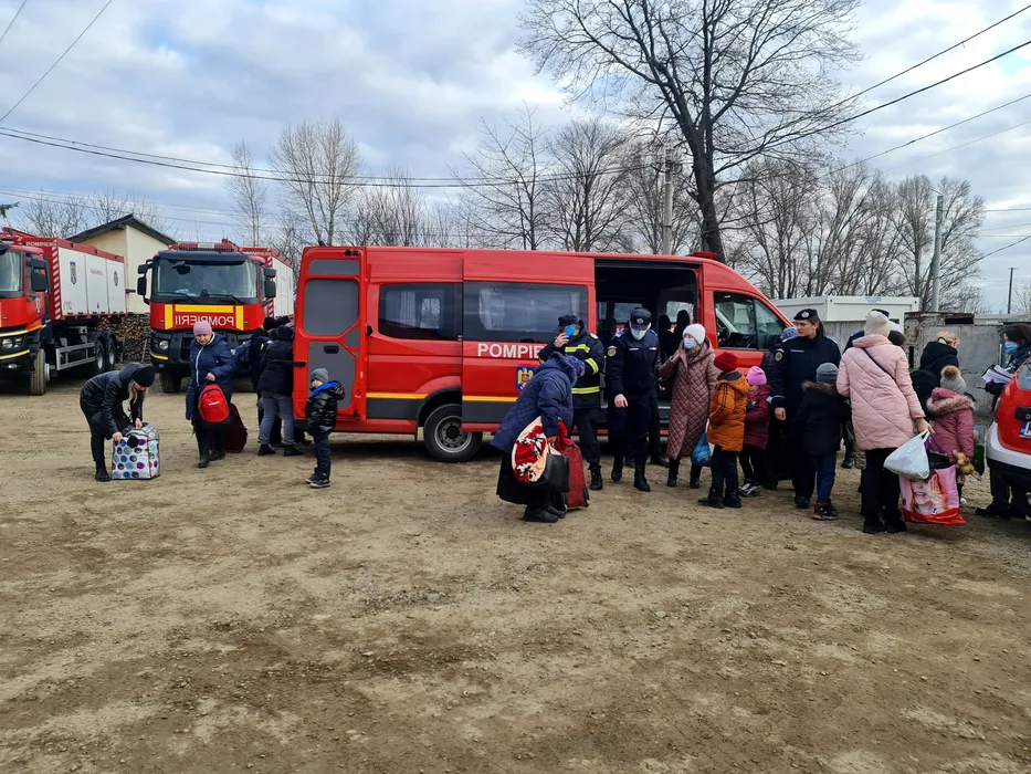 FOTO | Momentul în care primii refugiați ucraineni ajung la Tabăra Mobilă din Siret. Vor sta aici până la găsirea unor spații de cazare