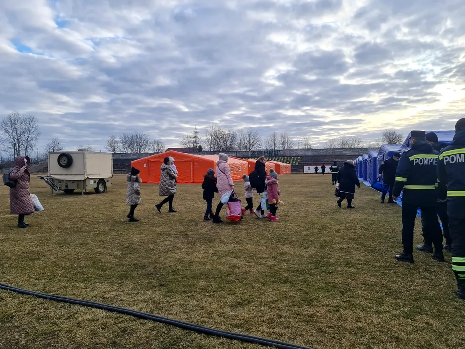 FOTO | Momentul în care primii refugiați ucraineni ajung la Tabăra Mobilă din Siret. Vor sta aici până la găsirea unor spații de cazare