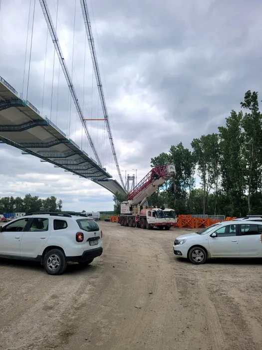 FOTO | Noi imagini spectaculoase cu cel mai mare pod din România și al treilea din Europa: „Ultimul segment de tablier metalic al Podului peste Dunăre se montează marți”