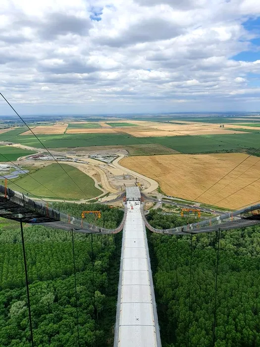 FOTO | Noi imagini spectaculoase cu cel mai mare pod din România și al treilea din Europa: „Ultimul segment de tablier metalic al Podului peste Dunăre se montează marți”