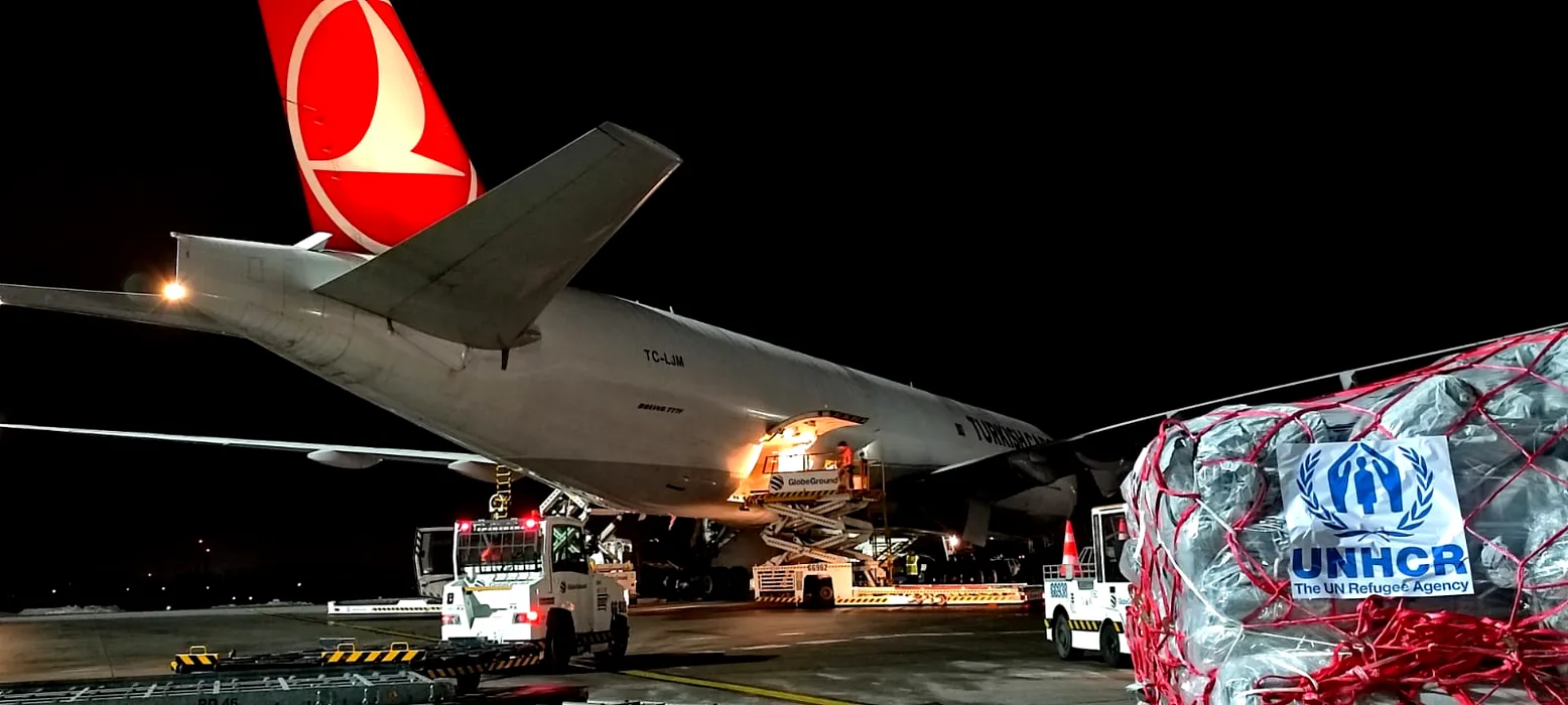 FOTO | O aeronavă cargo, încărcată cu AJUTOARE umanitare, a decolat în această dimineață de pe Aeroportul Henri Coandă spre populaţia grav afectată de cutremure din Turcia