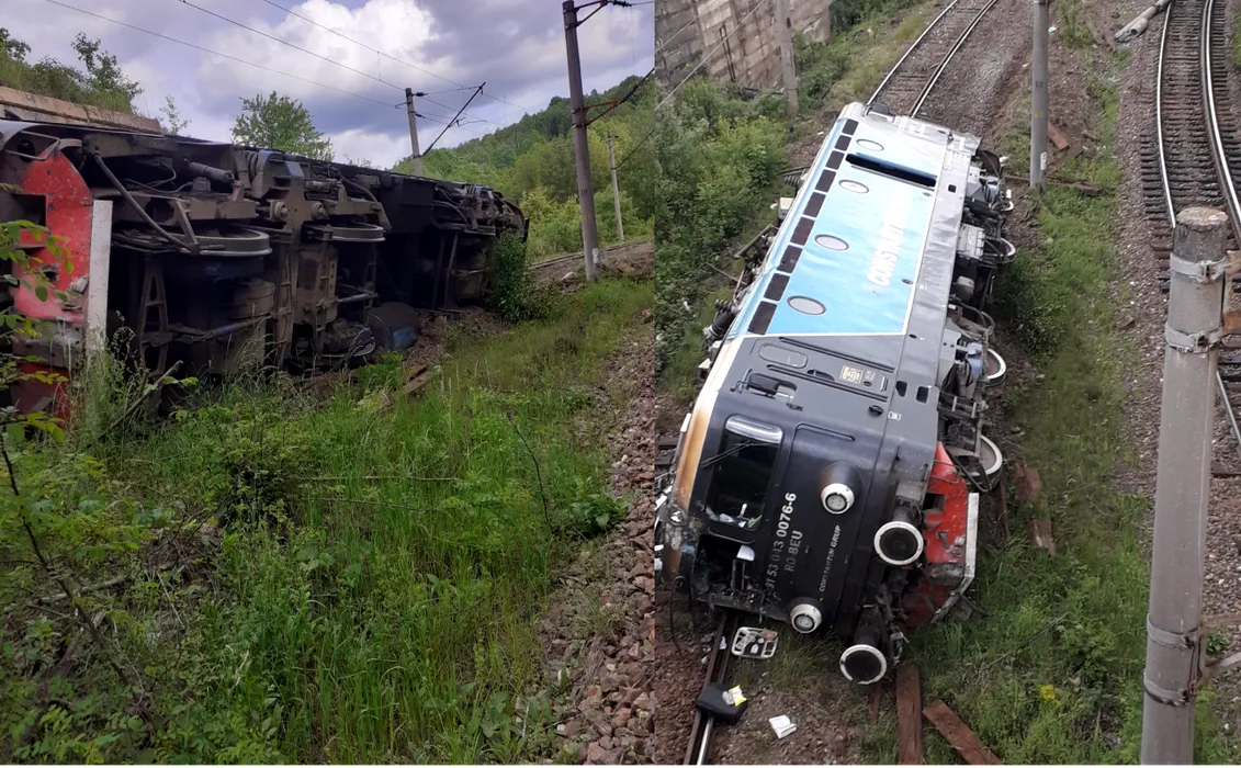 FOTO | O locomotivă a deraiat între Bănița si Merișor. Mecanicul locomotivei a fost rănit. Traficul feroviar este blocat