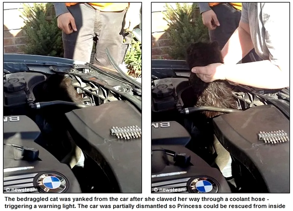 FOTO. O pisică a supraviețuit două săptămâni blocată la motorul unei mașini