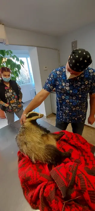 FOTO. „Operațiunea Bursucul”. Un astfel de animal, rănit, a fost salvat din „Lunca Mureșului” și dus la o clinică veterinară