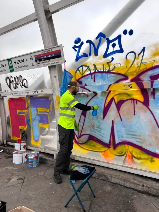 FOTO | Pasajul Basarab, plin de murdărie și graffiti, curățat de voluntari. A fost igienizată inclusiv stația STB de tramvai