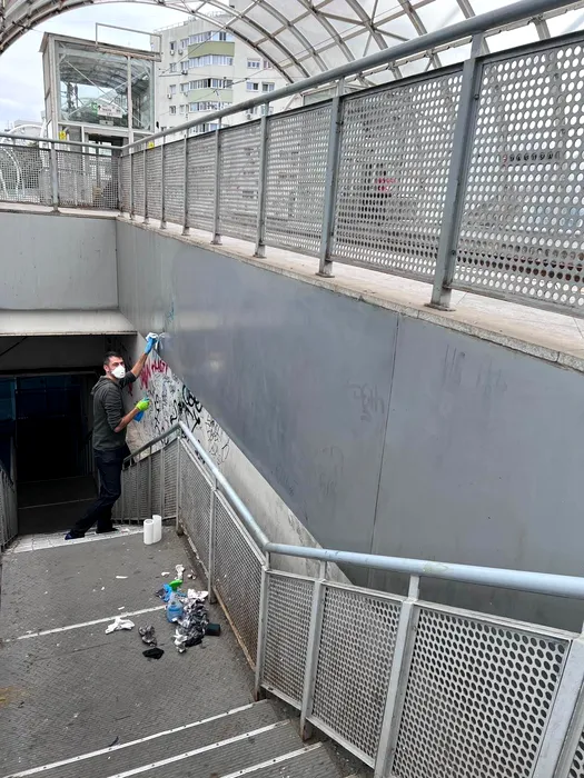 FOTO | Pasajul Basarab, plin de murdărie și graffiti, curățat de voluntari. A fost igienizată inclusiv stația STB de tramvai