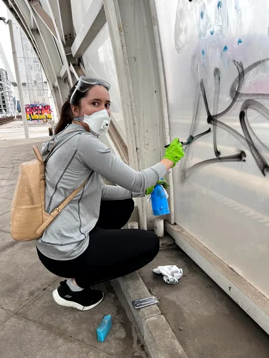 FOTO | Pasajul Basarab, plin de murdărie și graffiti, curățat de voluntari. A fost igienizată inclusiv stația STB de tramvai