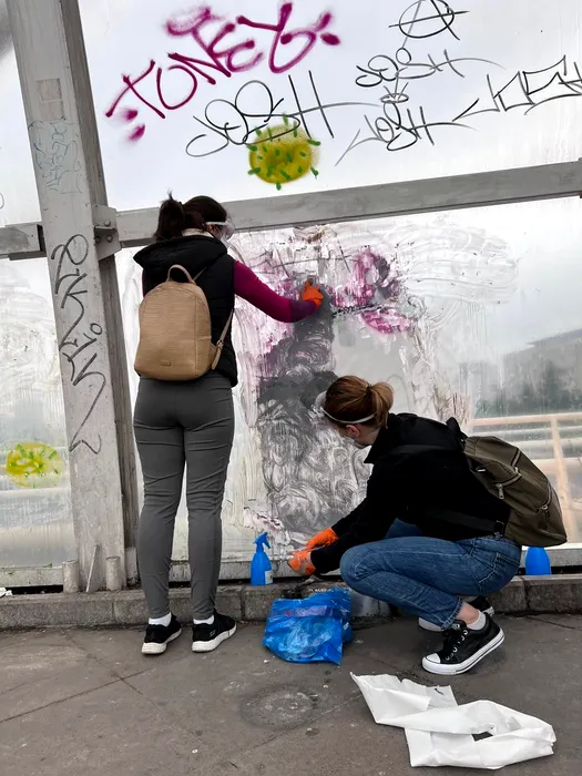 FOTO | Pasajul Basarab, plin de murdărie și graffiti, curățat de voluntari. A fost igienizată inclusiv stația STB de tramvai