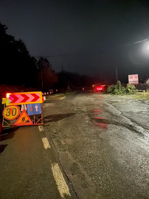 FOTO | Pericol pentru șoferi! O alunecare de teren a blocat circulația pe sensul Târgu Jiu – Râmnicu Vâlcea