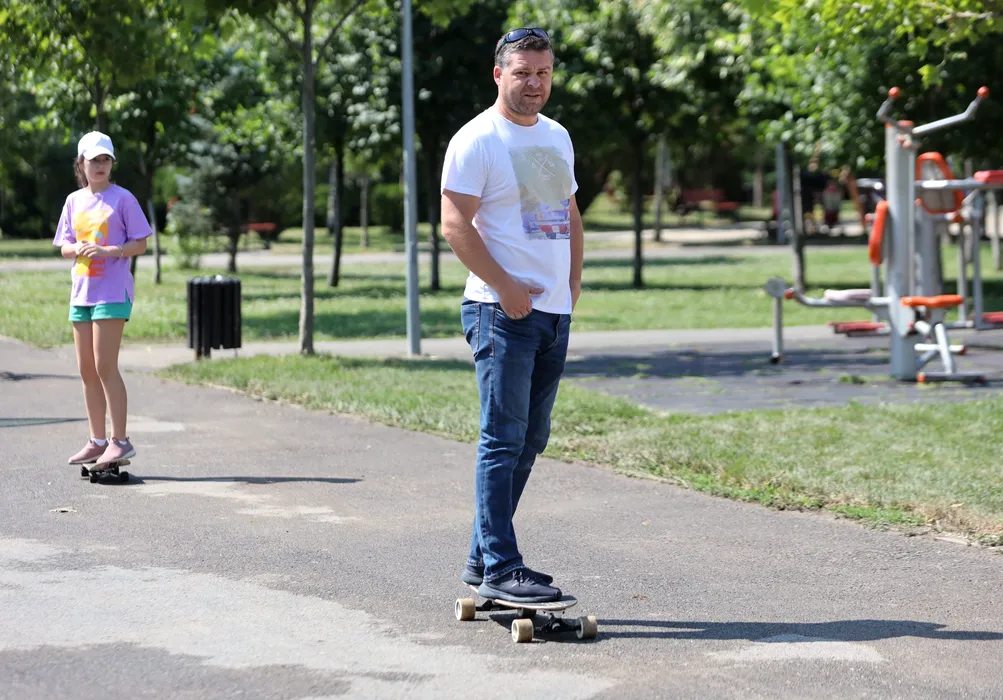 FOTO | Primul pumptrack din București. Copiii și adulții au la dispoziție o pistă de 42 de metri pe care să se plimbe cu bicicletele sau rolele/ Primarul Ciprian Ciucu s-a dat cu skateboard-ul la evenimentul de lansare