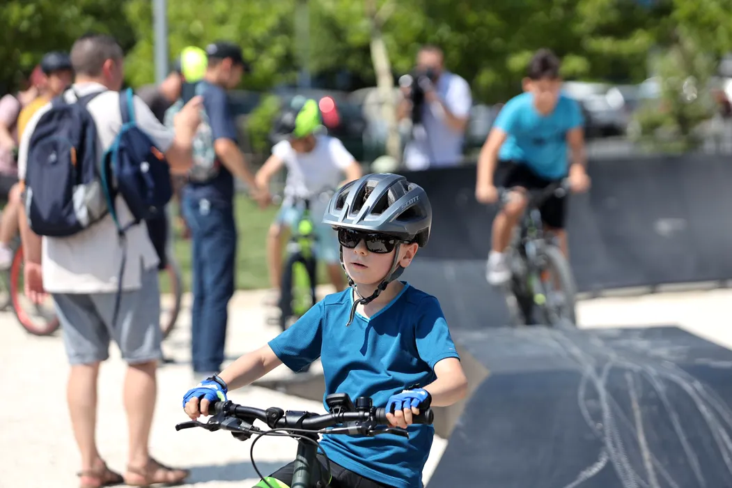 FOTO | Primul pumptrack din București. Copiii și adulții au la dispoziție o pistă de 42 de metri pe care să se plimbe cu bicicletele sau rolele/ Primarul Ciprian Ciucu s-a dat cu skateboard-ul la evenimentul de lansare