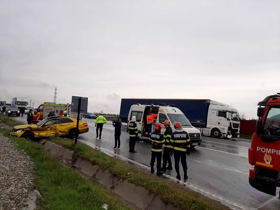 FOTO | Rănit grav într-un Mercedes auriu, pe centura orașului Drobeta Turnu Severin