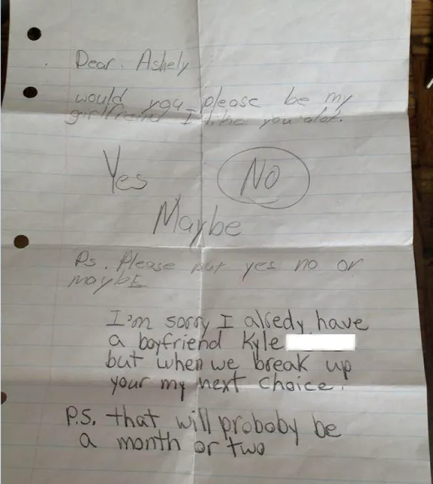 FOTO: Răspunsul neașteptat dat de o fată după ce a primit un bilet pe sub bancă