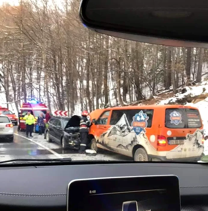 FOTO Șapte copii au fost transportați la spital după ce microbuzul în care erau a fost implicat într-un accident