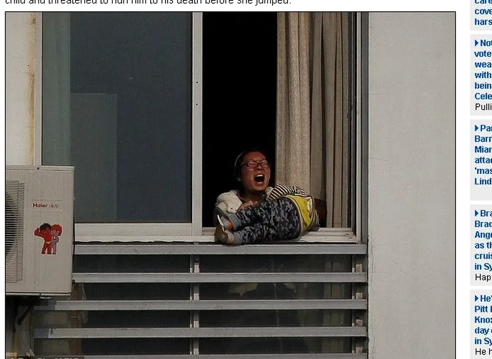 FOTO: Scene îngrozitoare în China. O femeie a amenințat că își aruncă bebelușul de la etajul 12, apoi se sinucide