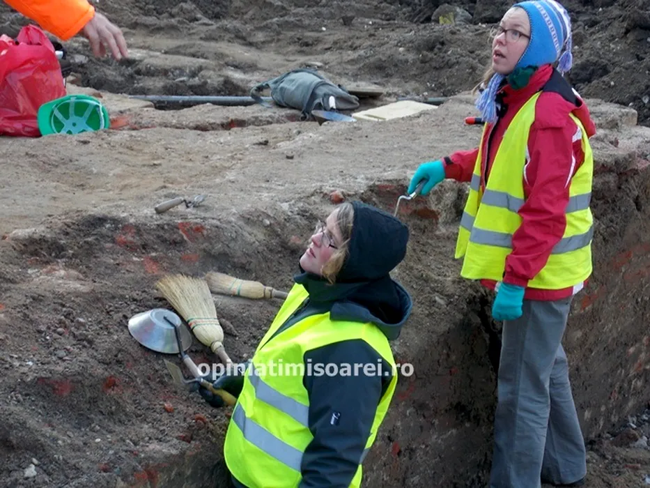 GALERIE FOTO: FOTO. Scheletele a doi copii, găsite în timpul lucrărilor de reabilitare a centrului istoric din Timișoara