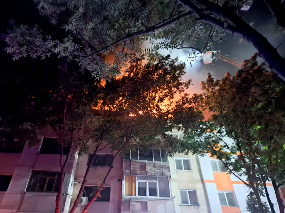 FOTO ȘI VIDEO| Bloc cuprins de flăcări și INTERVENȚIE în forță a pompierilor. Sute de persoane au fost evacuate în miez de noapte