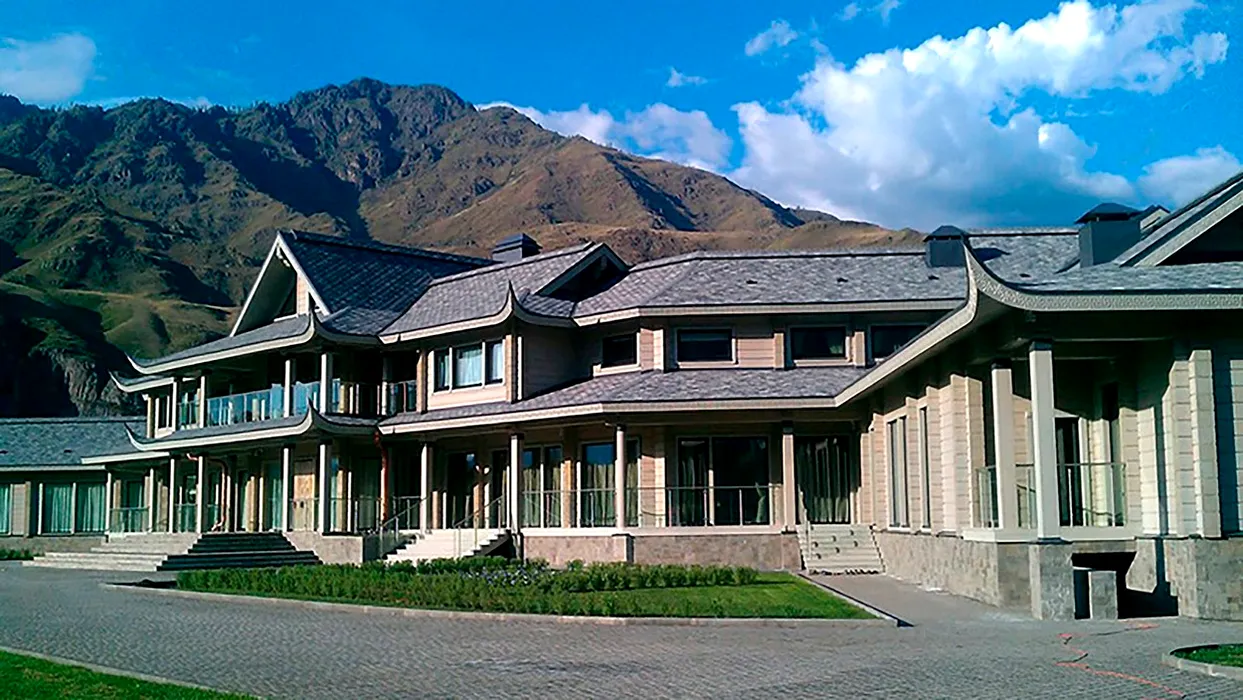 Altayskoye Podvorie resort, built by Gazprom, in Onguday region, Altai republic, allegedly a personal Putin’s dacha in Altai Mountains.,Image: 665584800, License: Rights-managed, Restrictions: ***
