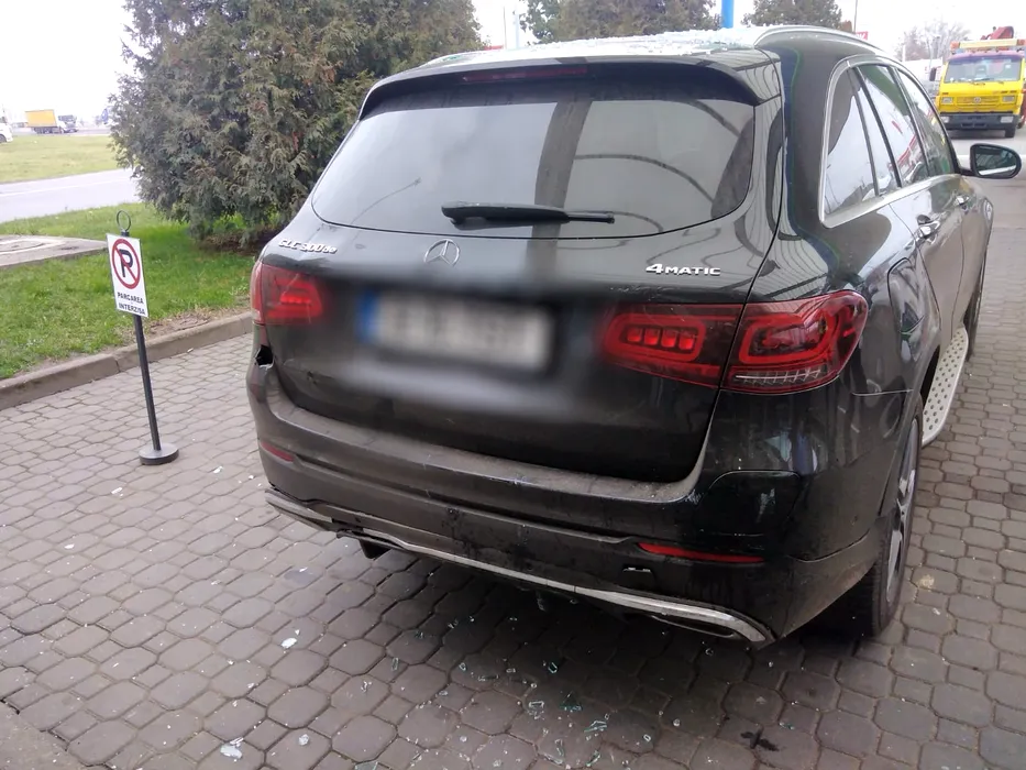 FOTO: Șoferul unui Mercedes a distrus o parte dintr-o benzinărie din Arad în timp ce dădea cu spatele / Sursa foto: IPJ Arad