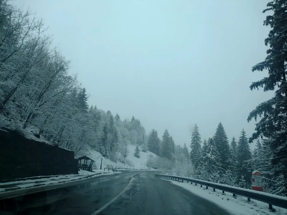 FOTO – Strat de zăpadă de 10 centimetri în Pasul Tihuţa. Cum se circulă în zonă