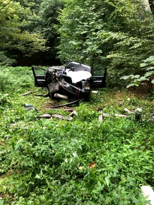 FOTO. Un adolescent de 16 ani a căzut cu mașina într-o râpă de 20 de metri