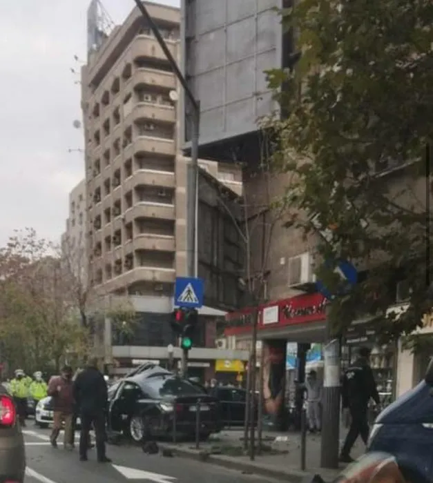 FOTO| Un șofer urmărit de polițiști a intrat într-un stâlp, în București. Bărbatul era băut și drogat