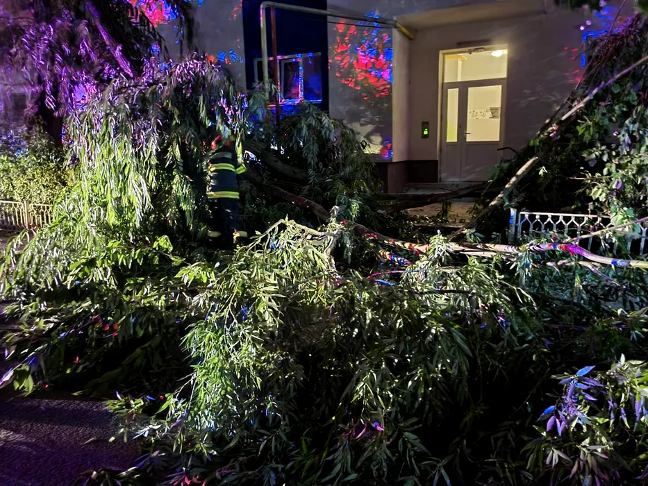 FOTO-VIDEO. Autoturisme distruse de furtună, în Giurgiu. Copacii și panourile publicitare s-au prăbușit din cauza vijeliei
