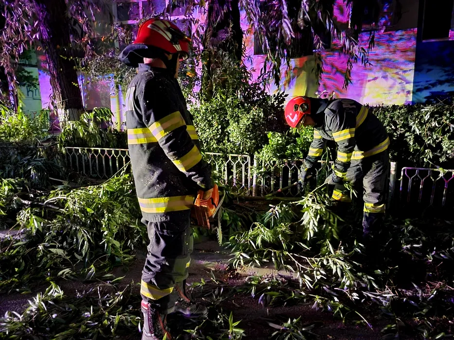 FOTO-VIDEO. Autoturisme distruse de furtună, în Giurgiu. Copacii și panourile publicitare s-au prăbușit din cauza vijeliei