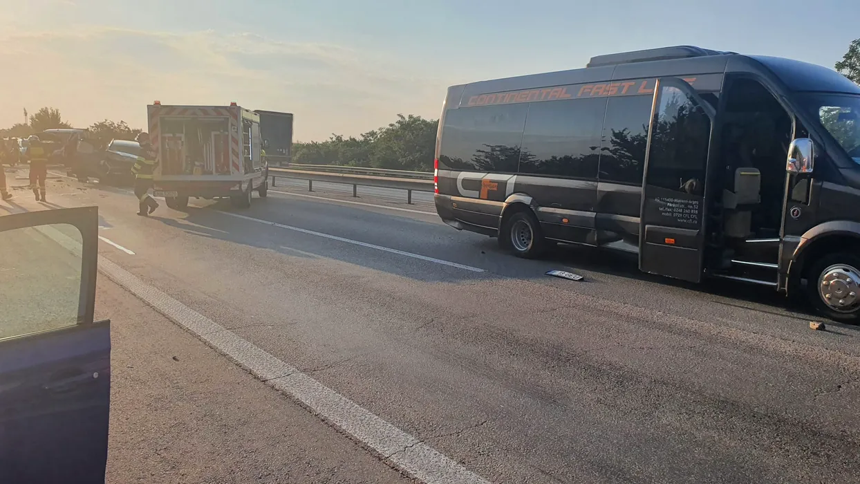 FOTO VIDEO | Cinci autoturisme s-au ciocnit pe Autostrada A1, în apropiere de București. Victimele au fost transportate la spital