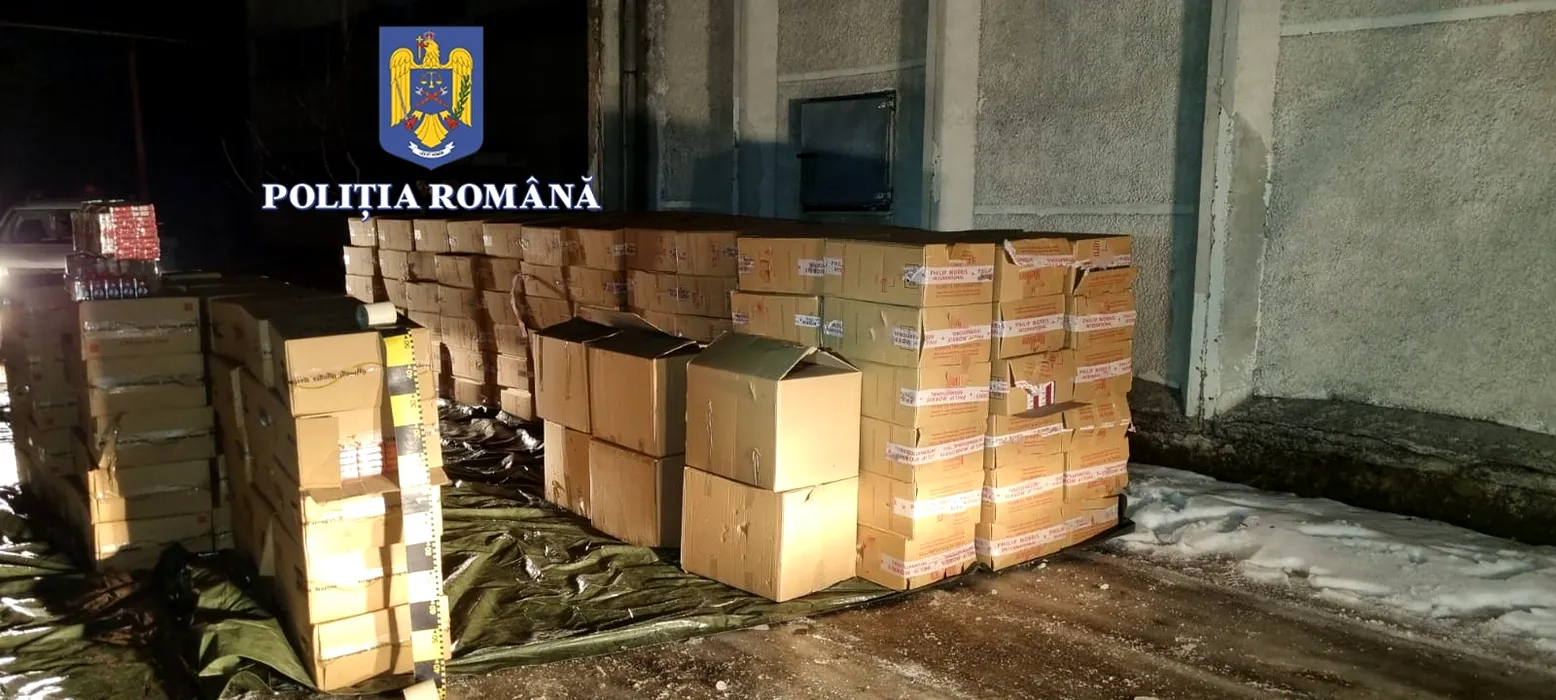 FOTO VIDEO | Fabrică clandestină și un tir plin cu ȚIGĂRI de contrabandă, descoperite de polițiști în Fălticeni