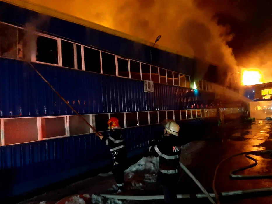 FOTO-VIDEO | Incendiu puternic la o fabrică din Maramureș. Au intervenit pompieri din patru județe