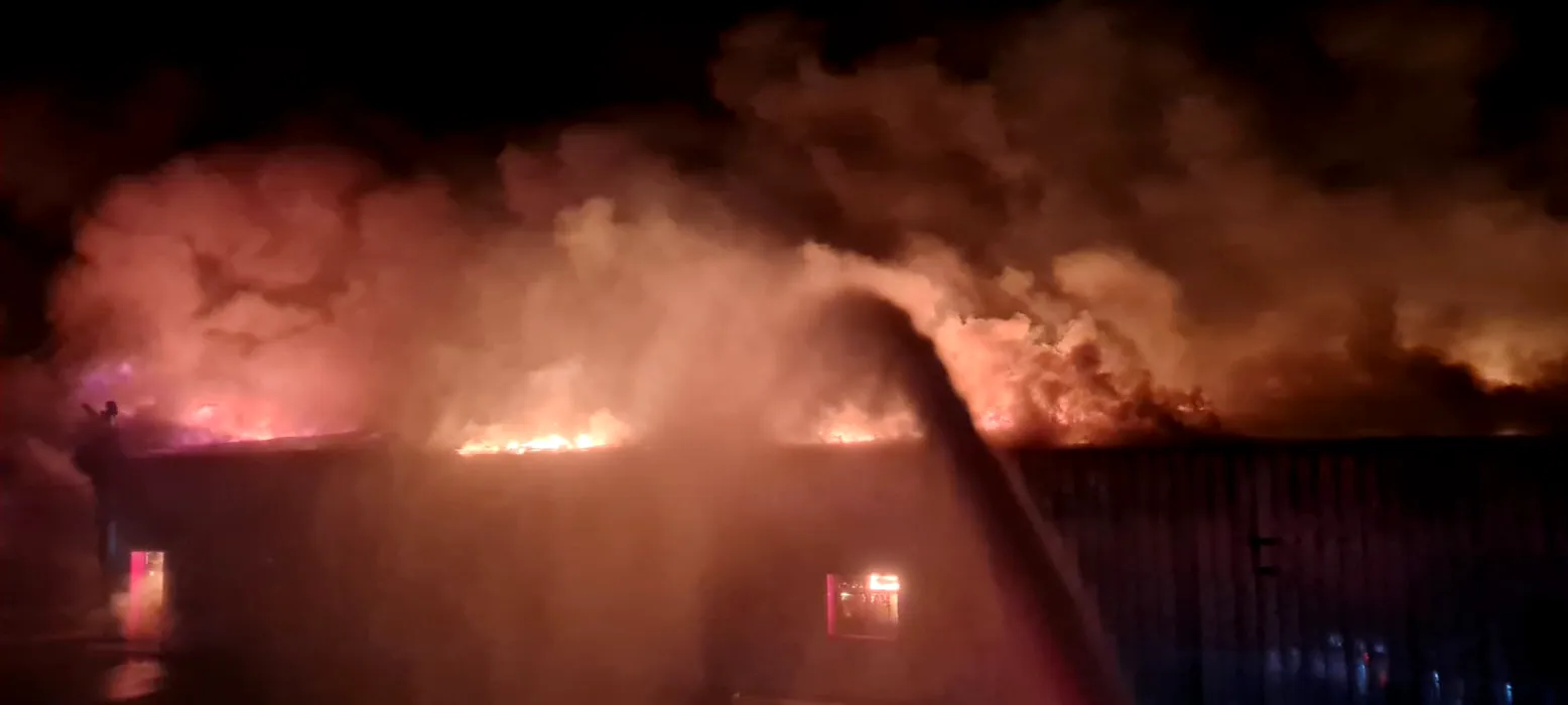 FOTO – VIDEO | Incendiu violent la o fabrică din Mizil. Doi pompieri au ajuns la spital, cu arsuri pe față