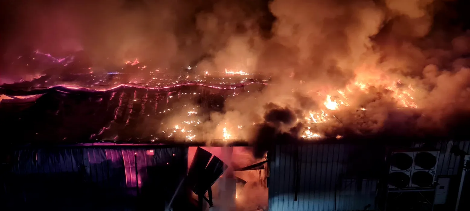 FOTO – VIDEO | Incendiu violent la o fabrică din Mizil. Doi pompieri au ajuns la spital, cu arsuri pe față