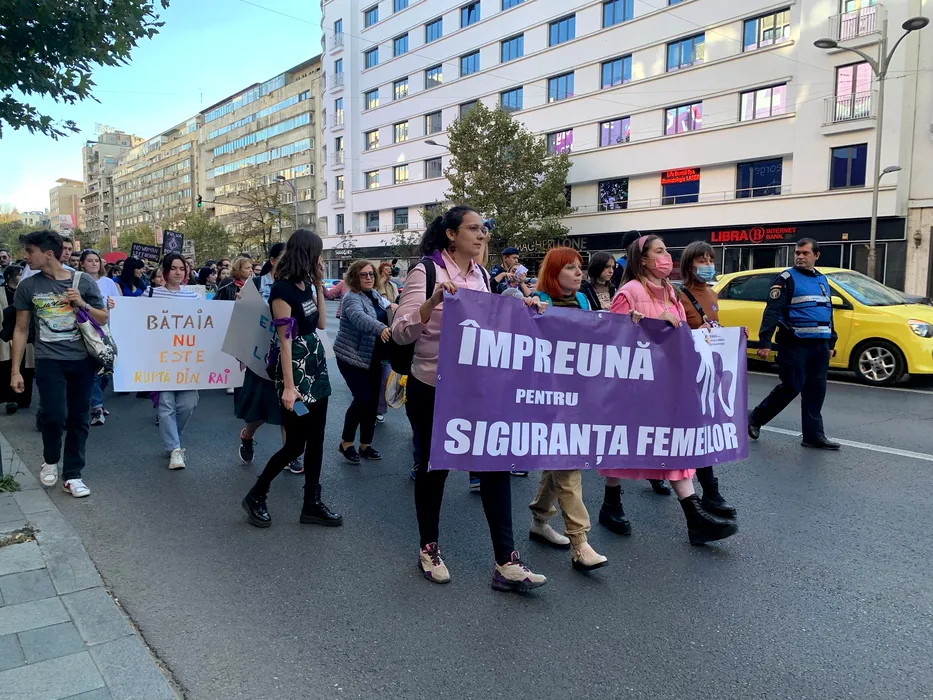 FOTO VIDEO | Marș pentru susținerea femeilor împotriva violenței domestice în centrul Capitalei