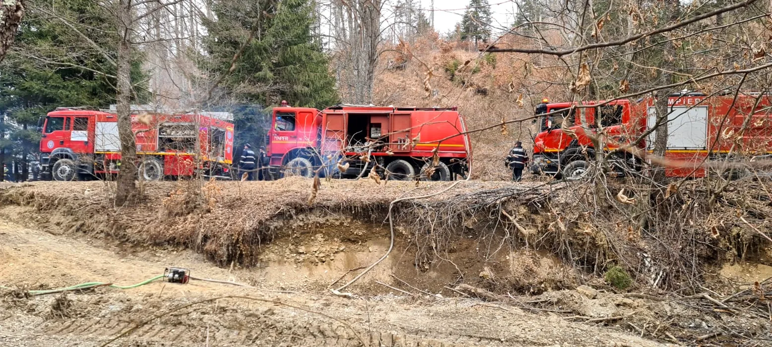 FOTO – VIDEO | O cabană din Argeș a fost distrusă complet de un incendiu. Turiștii au scăpat sărind pe geam. De la ce a pornit focul