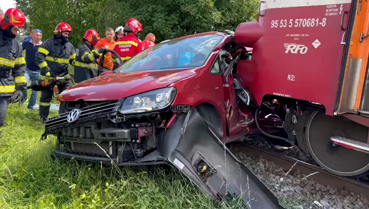 FOTO & VIDEO | O mașină a fost lovită de tren în Brașov. Cinci persoane au fost rănite în urma accidentului feroviar