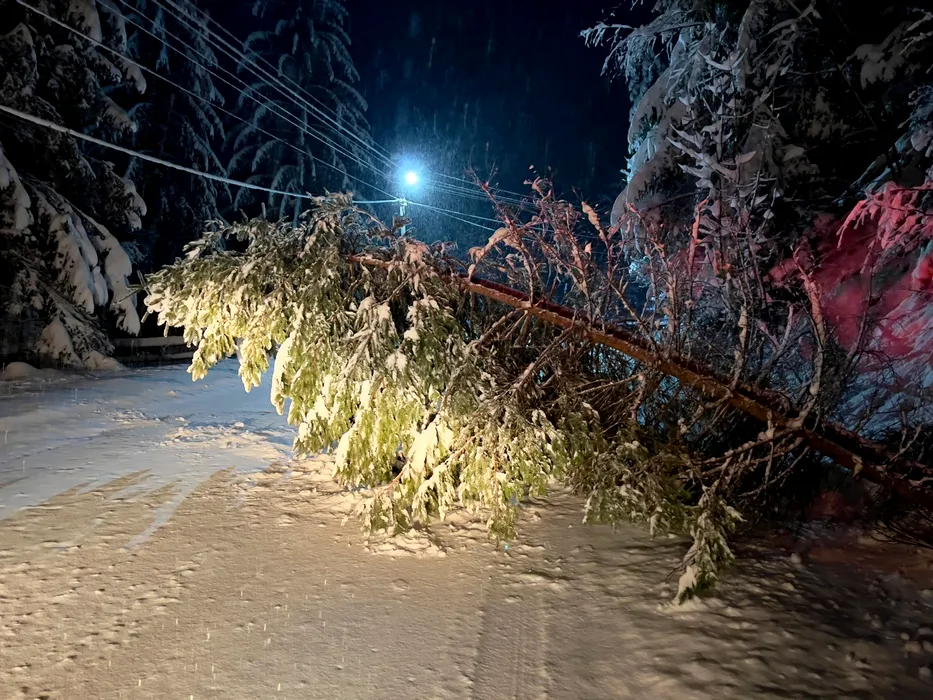 FOTO, VIDEO | Probleme în mai multe zone din țară din cauza vremii. Ninsoarea a pus copaci la pământ și a îngreunat traficul