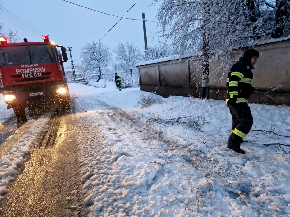 FOTO, VIDEO | Probleme în mai multe zone din țară din cauza vremii. Ninsoarea a pus copaci la pământ și a îngreunat traficul